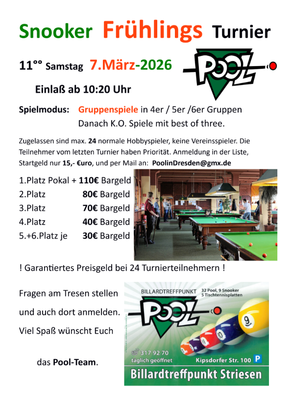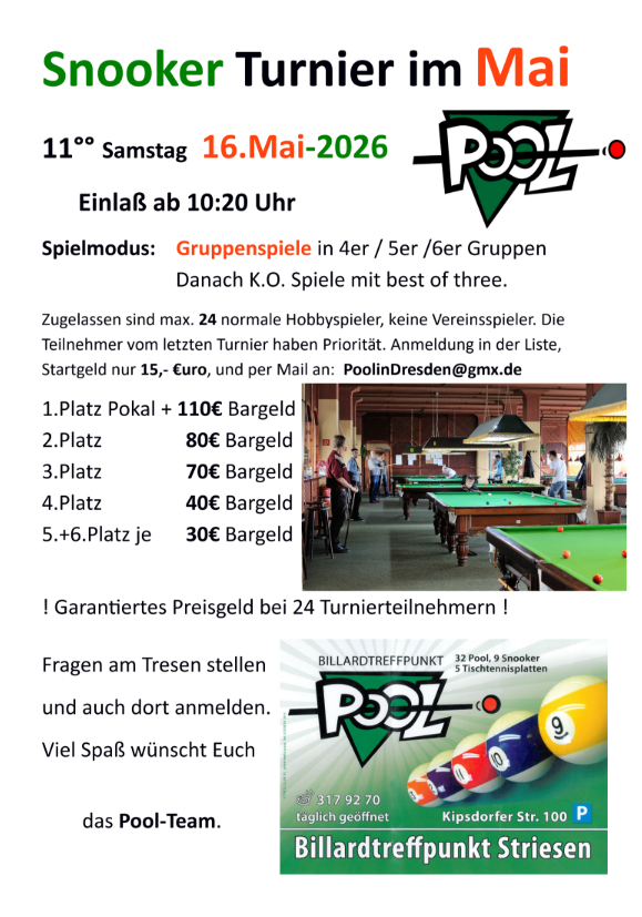 Der Billardtreffpunkt “Pool in Dresden”